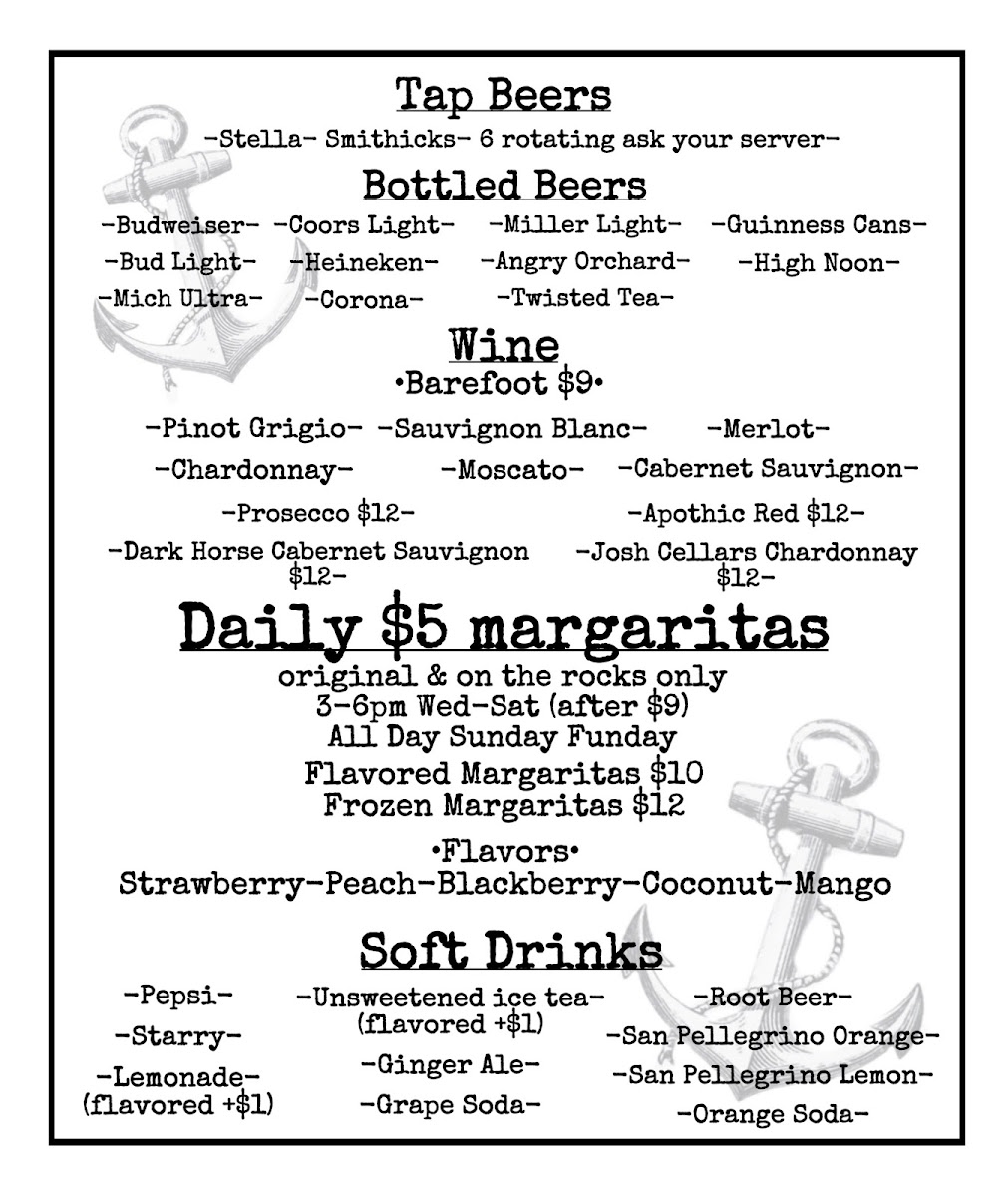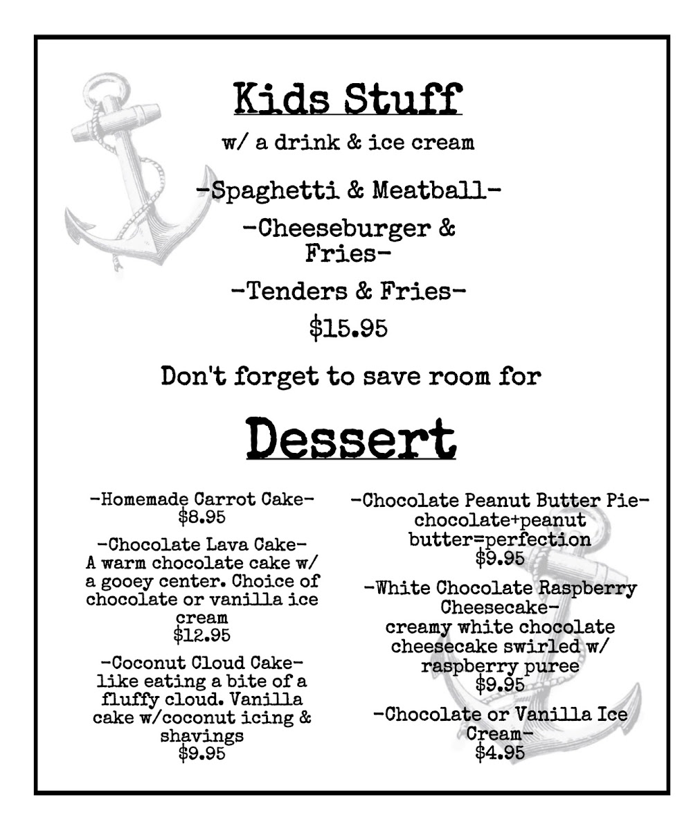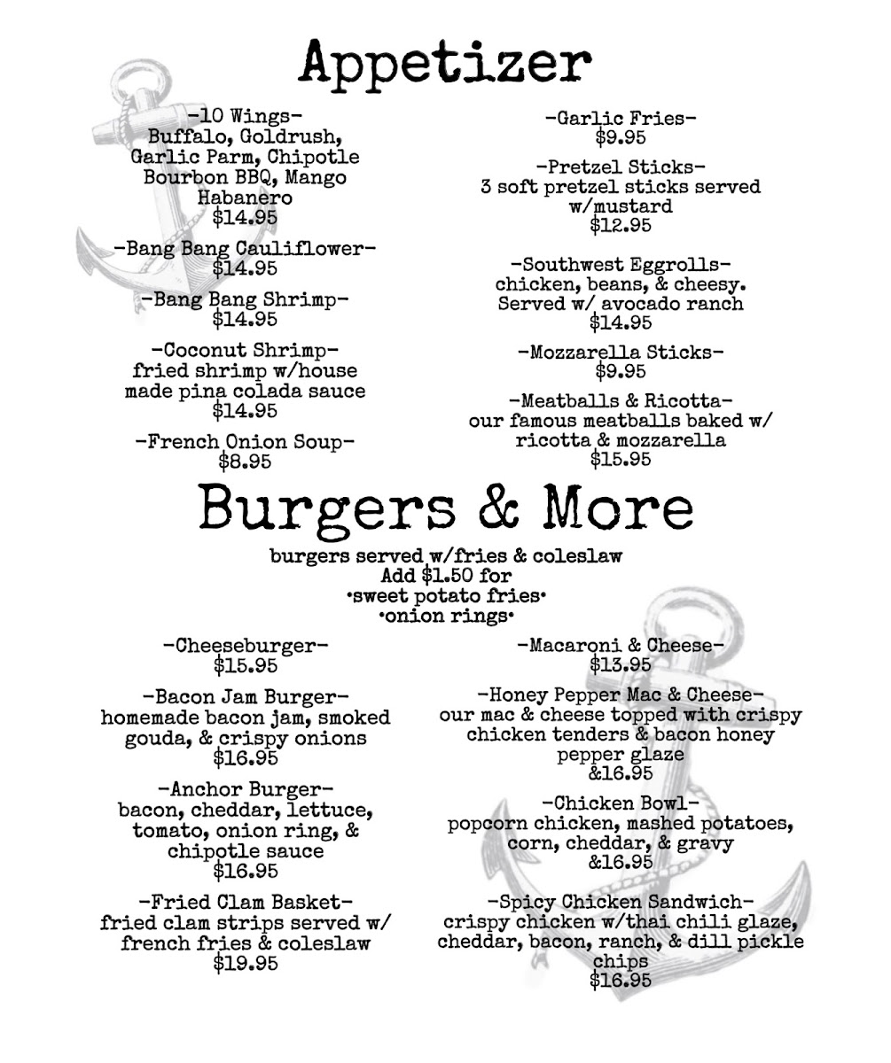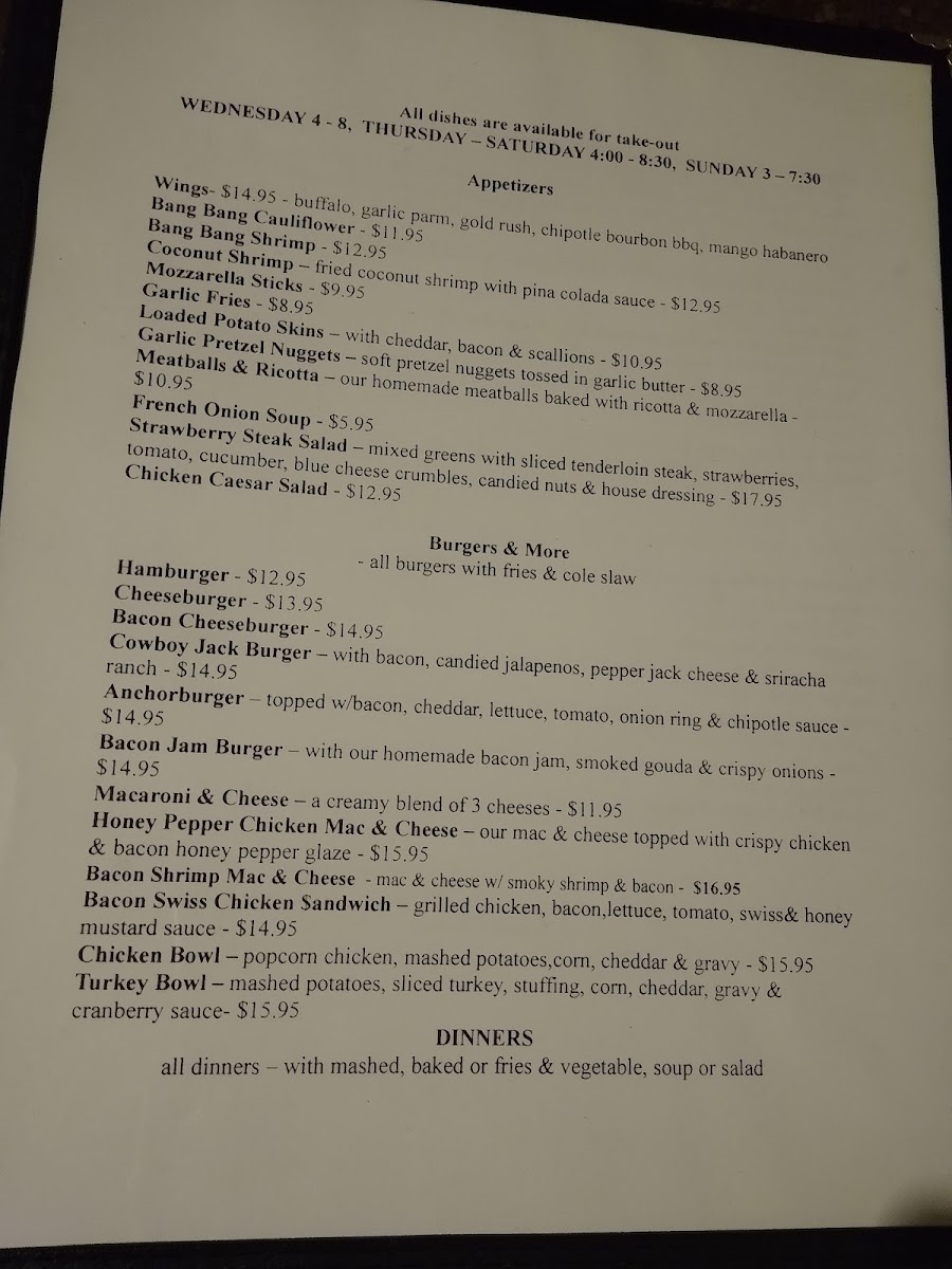 The Anchorage Restaurant and Marina Menu (Update 2025)